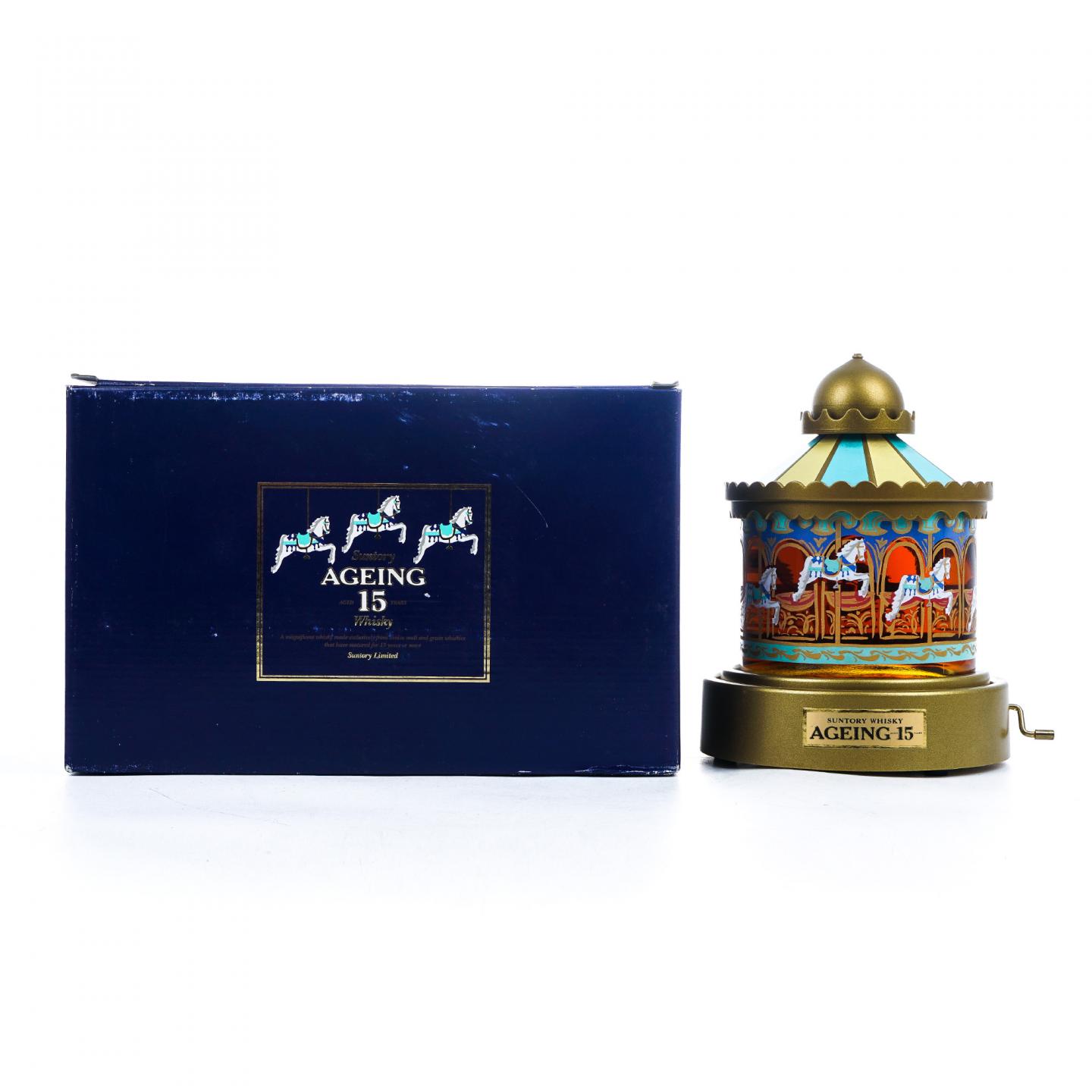 一款高质量的日本威士忌,由三得利株式会社特别推出。这瓶Suntory Ageing酒款精选融合了15年以上麦芽及谷物原酒,并以具童趣造型的旋转木马为包装,而整体实际为一只精巧的手摇音乐盒,轻轻转动手把即传出悦耳的音符旋律,酒瓶上的木马图案同步跟着旋转,相当具有特色及收藏价值。