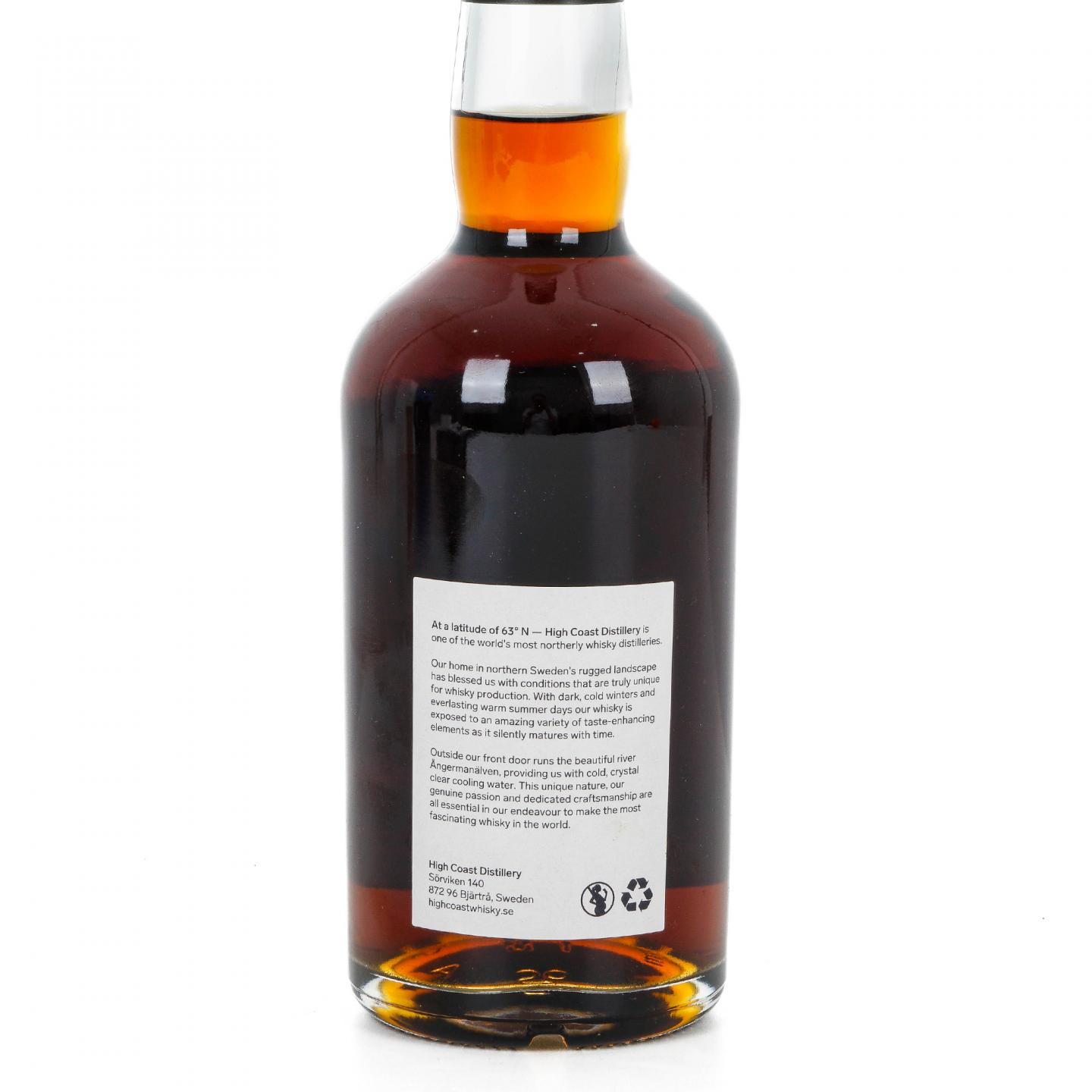 本款瑞典威士忌来自当地的High Coast 海歌蒸馏厂,2013年蒸馏,陈酿于Oloroso雪莉桶中,酒色红润迷人,酒精含量高达56%vol.,2021年以500ml的容量装瓶,限量仅有124瓶。 海歌威士忌蒸馏厂位于风景如画的瑞典高海岸自然风景区,是世界上纬度最高的酒厂之一,距北极圈仅一步之遥。毗邻酒厂的安格曼河,河流清澈见底且常年温度保持在2-4℃,是全世界温度最低的天然酒厂酿酒以及冷却用水。充沛且纯净的天然冷却水,为酒厂提供了源源不断的蒸馏冷却用水,使得海歌的新酒无比清冽,形成了鲜明的酒厂风格。酒厂从创立至今始终保持着精细、透明的品牌理念,仅使用出酒率极低但风味浓郁的拉格麦芽,20℃低温发酵,以及小桶熟成。