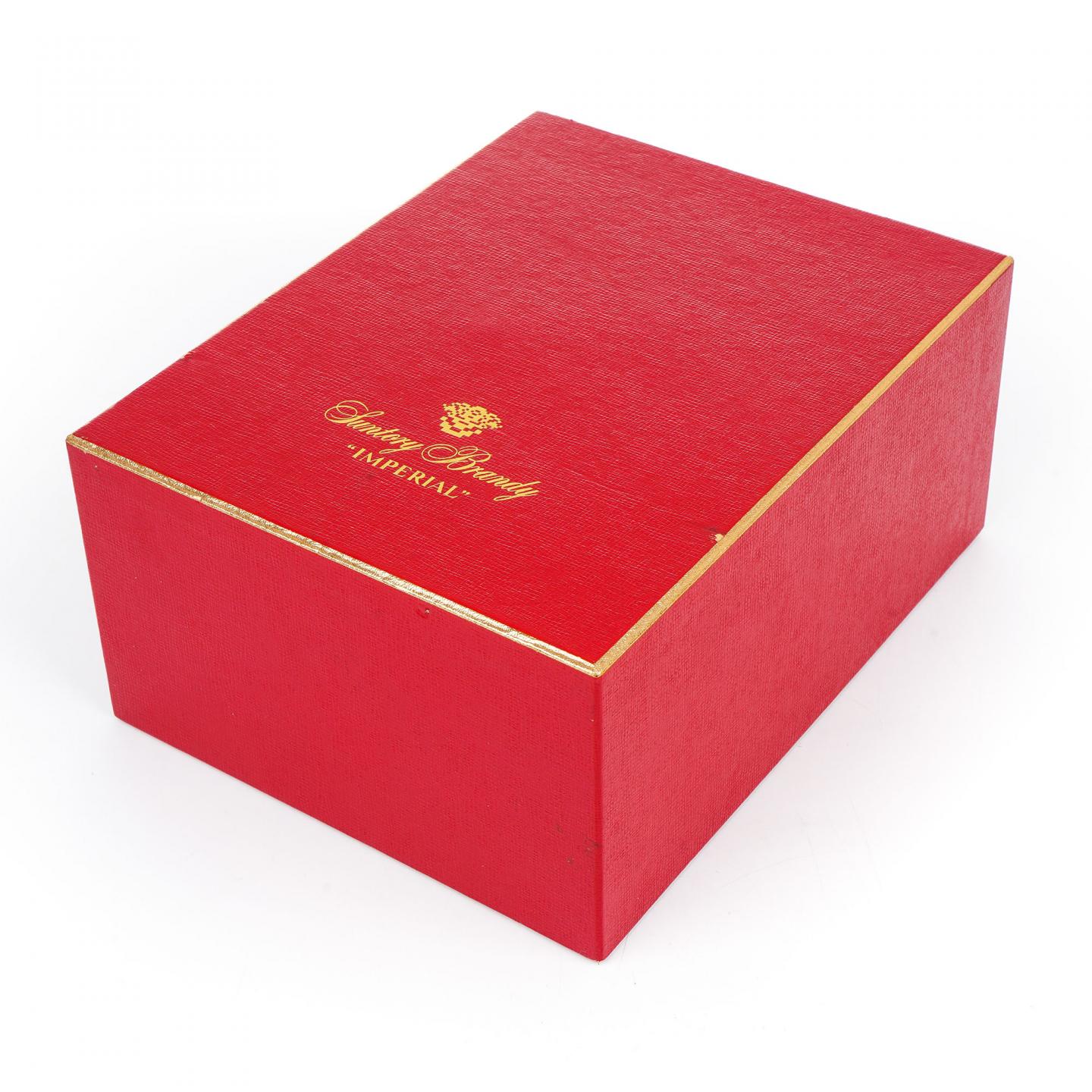 三得利是日本最古老的威士忌酿造公司,它的起源可以追溯到Torii Shinjiro-鸟井信治郎于1899年创立的一家专门销售进口葡萄酒的小店。在此期间,该公司被称为Kotobukiya-寿屋。1960年代,Kotobukiya更名为三得利Suntory,由于当时三得利旗下其他酒厂都还没有成立,这款酒只使用了熟成于山崎蒸馏所的高年份威士忌调和而成。三得利将其命名为“帝国”,赋予了这瓶酒在当时特殊的地位与期望。并开始推出三得利调和威士忌Imperial“帝国”来纪念这一事件,采用波希米亚风格的切割水晶酒瓶盛放酒液,典雅奢华,酒标上还有大大的金花标志。帝国威士忌代表着当时三得利公司的最高水准,也是当时日本社会名流才享用得到威士忌,除了选用最好的威士忌原酒,瓶身也不吝使用了日本皇室御用品牌KAGAMI(镜)的手工水晶瓶。而另一款则为三得利金花标白兰地酒款,酒精度为40% Vol.,容量600ml,也非常值得品鉴。