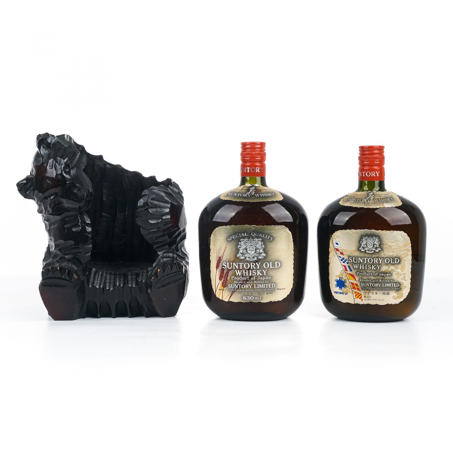 三得利Old寿瓶系列最初诞生于1950年代,是日本威士忌的经典品牌。浑圆的独特瓶身,甘醇浓郁的圆润口感,温醇悠长的余味,让威士忌行家为之深深着迷。自上市后屡创世界销量第一的佳绩,最高峰在1980s日威全盛时代,一年销售超1.4亿瓶,打破了世界纪录!由此彻底奠定了三得利在日威业界的江湖老大地位。本套拍品为经典的三得利Old Whisky寿瓶2瓶组分别如下:1、三得利 Old Whisky 寿瓶 金狮标 special quality,装瓶于1970s-1980s,酒精度43% Vol.,容量830ml;2、三得利 Old Whisky 寿瓶 金狮标 Portopia 1981,装瓶于1981年,酒精度43% Vol.,容量760ml。