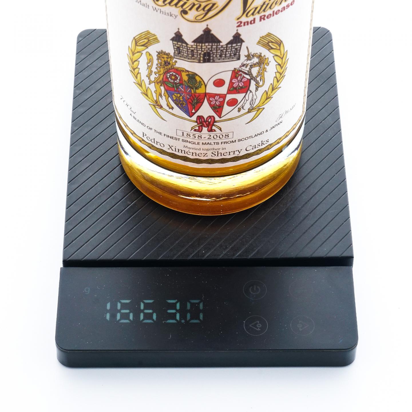 秩父位于日本埼玉县的秩父市,现为风险威士忌有限公司(Venture Whiskey Ltd.)所有,是一个年轻但备受追捧的威士忌品牌。秩父威士忌的产量有限,很多酒款一上市便即刻售罄,可谓是一瓶难求。本款秩父调和型威士忌非常特殊,专为纪念2008年英日两国建交150周年而装瓶的,这款威士忌采用日本和苏格兰最好的单一麦芽原酒,由秩父创始人肥土伊知郎(Ichiro Akuto)精心打造,限量共推出1000支。酒精强度为50.0%,容量700ml,酒色金黄透亮,非常独特珍稀!