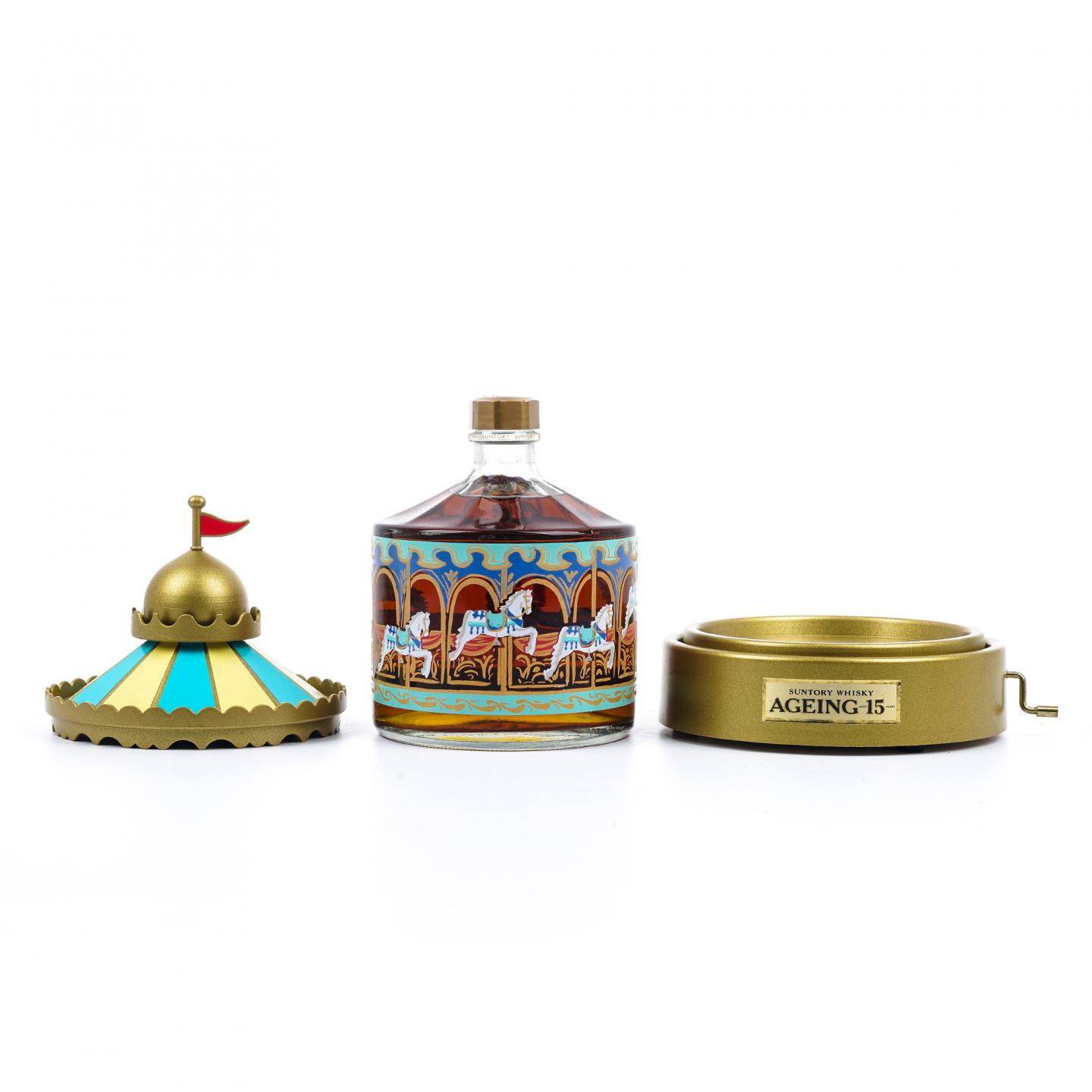 一款高质量的日本威士忌,由三得利株式会社特别推出。这瓶Suntory Ageing酒款精选融合了15年以上麦芽及谷物原酒,并以具童趣造型的旋转木马为包装,而整体实际为一只精巧的手摇音乐盒,轻轻转动手把即传出悦耳的音符旋律,酒瓶上的木马图案同步跟着旋转,相当具有特色及收藏价值。