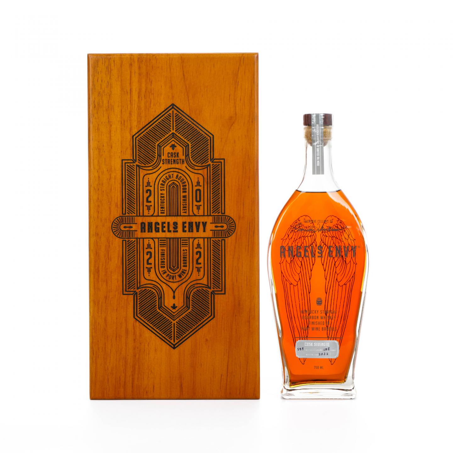 天使之翼(Angel's Envy)酒厂是由名人堂的初始成员、多种著名的波本威士忌创始人林肯·亨德森(Lincoln Henderson)和他的儿子韦斯·亨德森 (Wes Henderson)一起于2016年创立,是真正的“世家出身”。在亨德森父子、酒厂首席蒸馏师欧文·马丁 (Owen Martin) 和全体员工的共同努力下,这座稍显年轻的酒厂推出波特桶波本威士忌后不久,就获得了国际知名葡萄酒杂志《葡萄酒爱好者》给出的98分高分,并称其为“品质的巅峰之作”。之后酒厂又在旧金山烈酒大赛中获得了金奖,其发行的2022单桶更是夺得了双金奖,令人为之侧目,天使之翼所创作的波本威士忌正在世界上获得越来越多业界专业人士的认可。这款2022年推出的天使之翼肯塔基桶强波本是以玉米、黑麦和发芽大麦为原料制成,先是在全新的美国橡木桶中熟成后,转入手工挑选的来自葡萄牙杜罗河谷的红宝石波特桶进行陈酿九个月甚至更长时间的过桶,最终呈现稀有的桶强版波本威士忌。酒精度为59.9% Vol.,容量750ml。独特的雕花硬木酒盒古朴典雅,一眼“高大上”,颇具纪念意义和收藏价值,只是放在酒柜上便已是赏心悦目。天使之翼波特桶熟成肯塔基纯波本威士忌桶强版每年仅发布一次,喜欢波本威士忌和想要感受波特桶波本的酒友们可千万别错过。