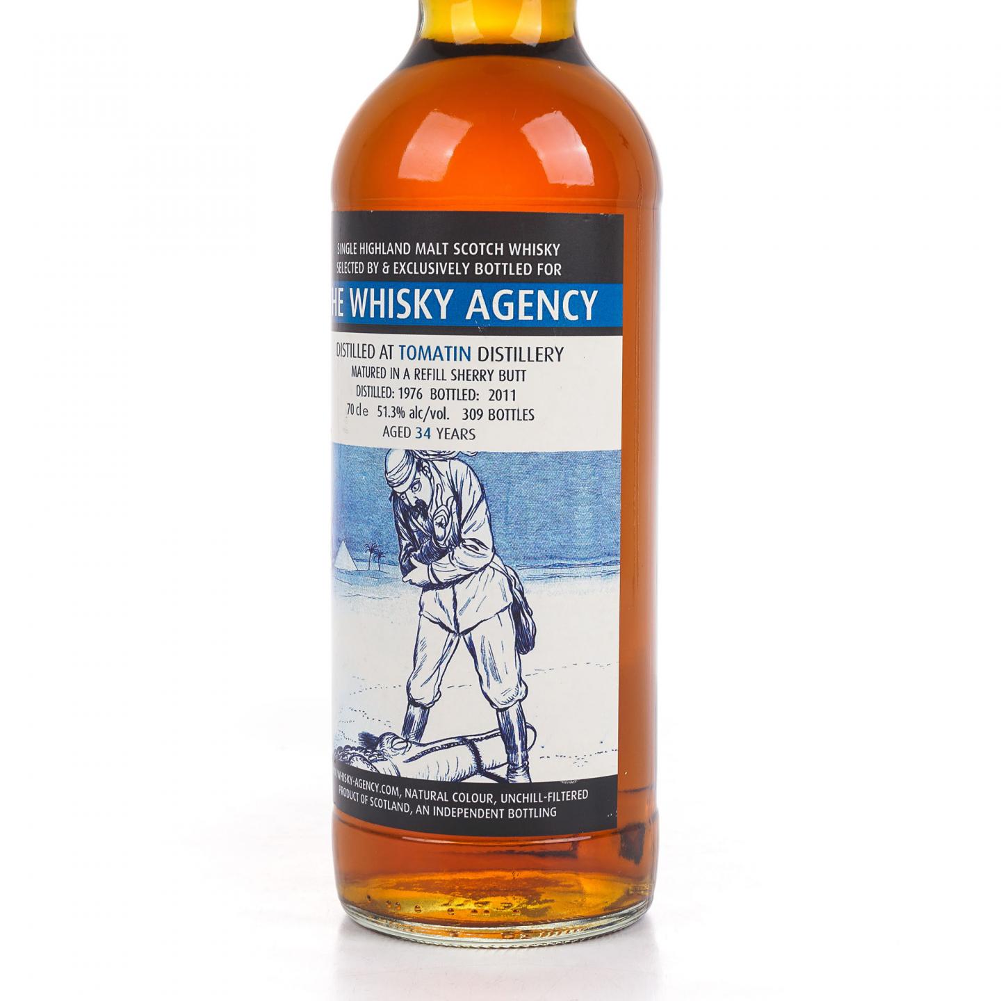 这是一支蒸馏于1976年的汤马丁34年美酒,采用优质的重填雪莉桶陈酿,2011年由装瓶商The Whisky Agency (TWA)以酒精度51.3%vol装瓶发布,限量仅发布309瓶,Whiskybase高达91.25分。非常值得品饮、珍藏,The Whisky Agency(TWA)是由Carsten Ehrlich于2008年成立的公司,初期主要以提供威士忌、朗姆酒桶给其他装瓶厂、俱乐部和公司装瓶所用。随后,TWA逐渐加重自我装瓶的比重,其高品质的选酒和精美的酒标设计,在全球威士忌界已成为威士忌迷的话题热点以及收藏所好。