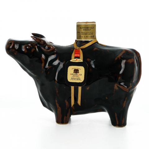 三得利 1985年首版 生肖牛陶瓷瓶 金狮标