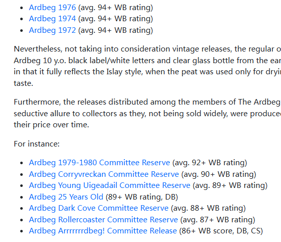 阿贝推出的海量美酒中,有多款在Whiskybase中获得颇高评分,非常值得重点关注。对此,whiskyhunter统计的榜单如下图——