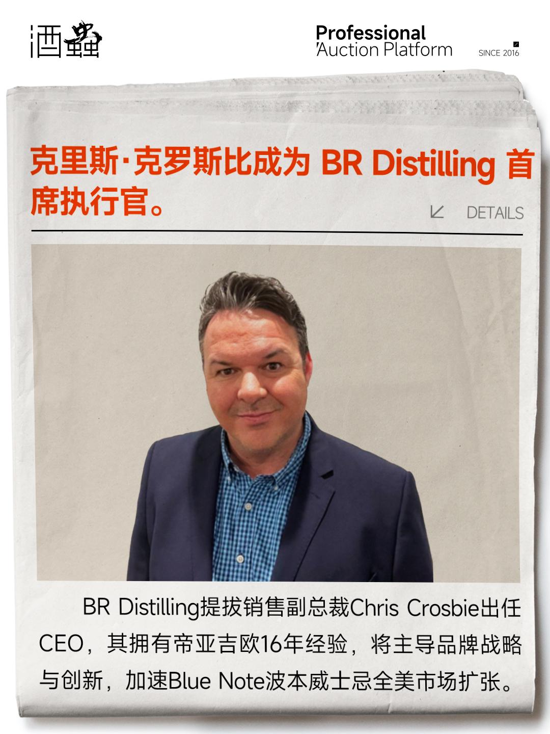 Blue Note波本威士忌制造商BR Distilling宣布提拔克里斯·克罗斯比担任首席执行官。克罗斯比于2024年3月加入公司担任销售副总裁,此前在帝亚吉欧任职16年,最终晋升为商业副总裁。
