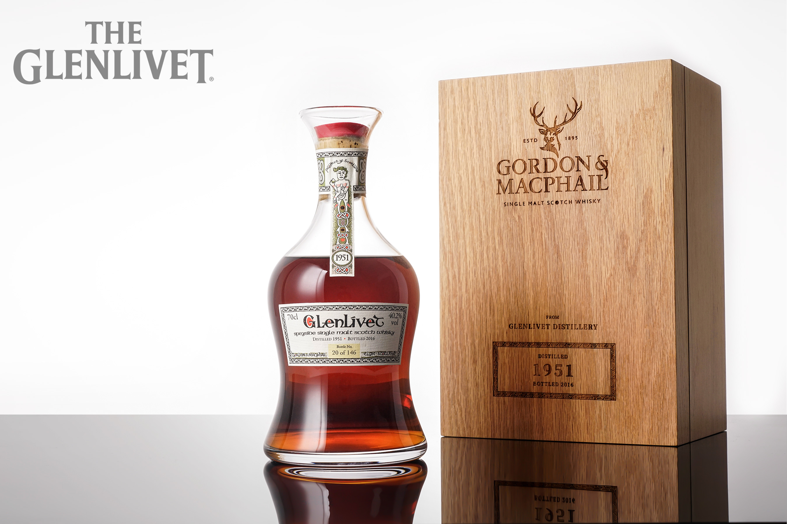 这是一支蒸馏于1951年的格兰威特单一麦芽威士忌,2016年由著名装瓶商Gordon & Macphail装瓶推出,限量仅灌装146瓶。酒体呈迷人的红琥珀色泽,酒精度40.2%vol,容积700ml。实属罕见的格兰威特单一麦芽威士忌,推荐珍藏。