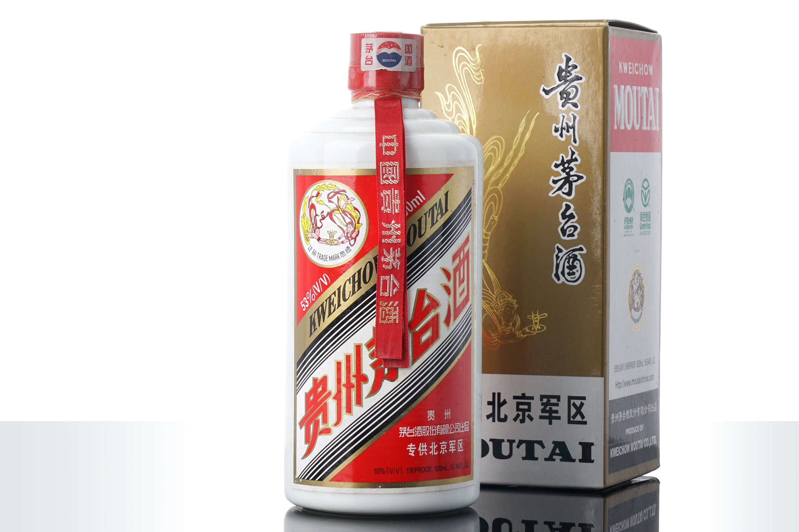 军区茅台特指1990-2012年间茅台集团为七大军区定制的特供酒,属特殊历史产物。本款为北京军区专供款,酒质优异,极具收藏价值。2014年出于行业自律考虑,茅台集团的特供、专供茅台酒退出历史的舞台。