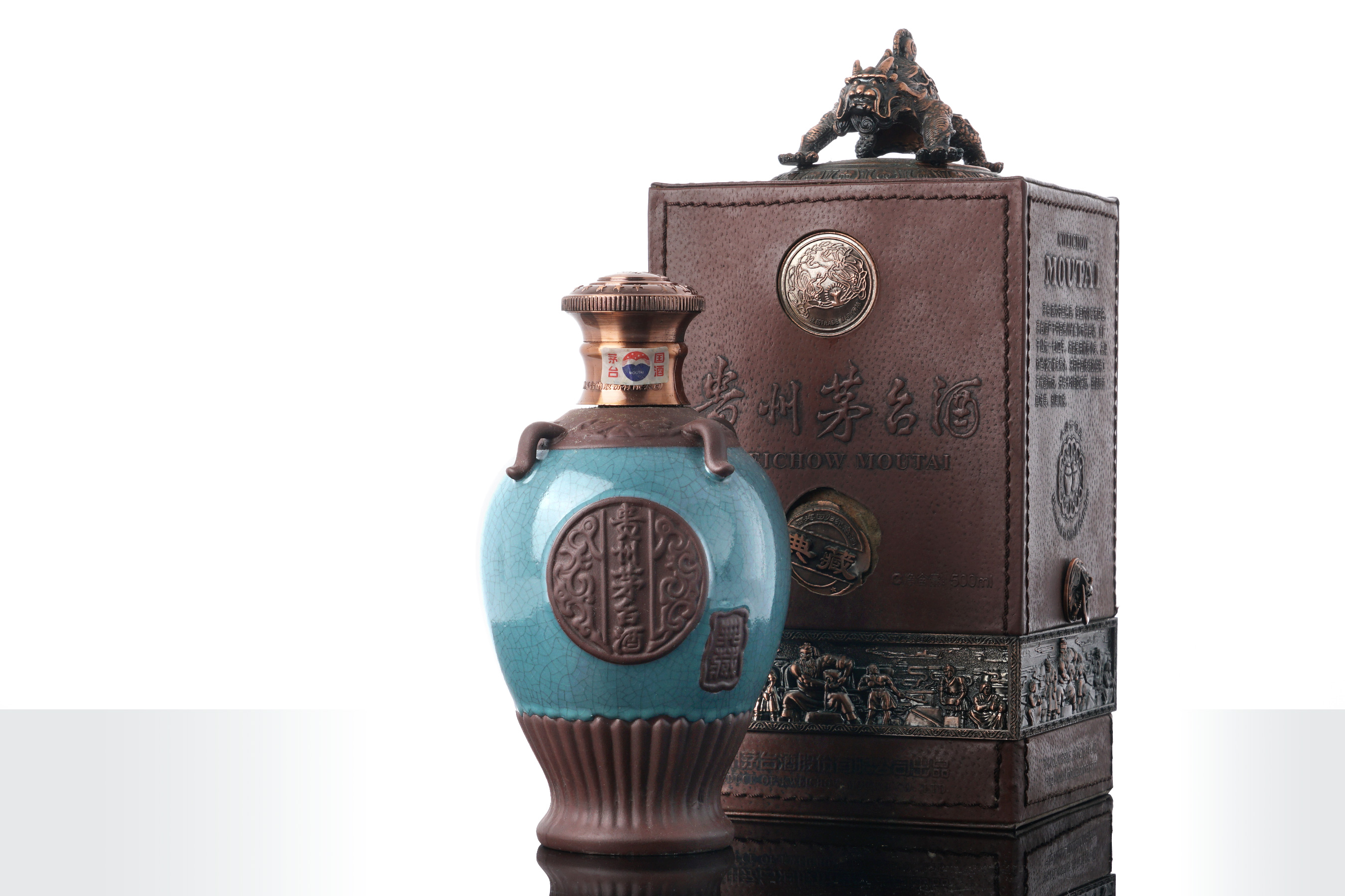 为纪念香港回归,贵州茅台酒股份有限公司于2008年特别推出此款典藏纪念酒。外盒以奇兽压顶,盒身印有“贵州茅台酒”凹凸字样,搭配金属浮雕与“典藏”圆徽,彰显不凡气质。