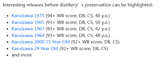 轻井泽推出的海量美酒中,有多款在Whiskybase中获得颇高评分,非常值得重点关注。对此,whiskyhunter统计的榜单如下图——