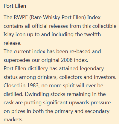 波特艾伦蒸馏厂在威士忌饮家、收藏者与投资者群体中,已拥有传奇地位。该厂于1983年停产,此后再也没有新的原酒被蒸馏酿造。目前仍存于橡木桶中的原酒数量持续减少,这给一级市场(官方发售)与二级市场(流通交易)的酒款价格都带来了显著的上行压力。