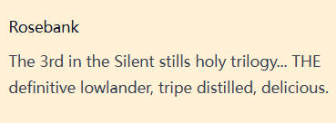 罗斯班克(Rosebank)是 “沉默酒厂三杰”(Silent Stills Holy Trilogy)中的第三位成员,堪称苏格兰低地威士忌的标杆代表。其酒体采用三次蒸馏工艺酿造,口感宜人。