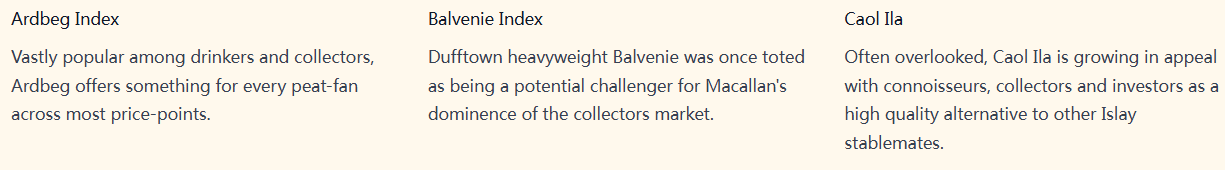 百富:作为苏格兰达夫镇(Dufftown)的重量级威士忌品牌,百富曾被认为是有望挑战麦卡伦在收藏市场主导地位的潜力选手。