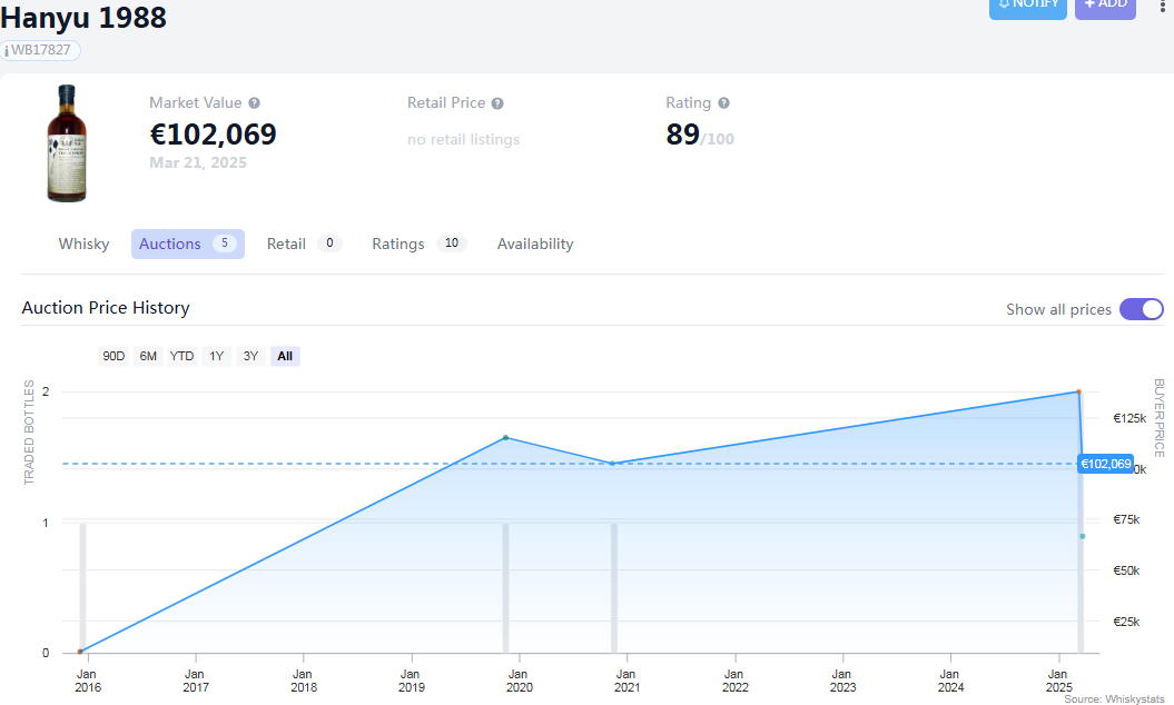 ▲whiskystats羽生“黑桃十”行情走势图2016-2025