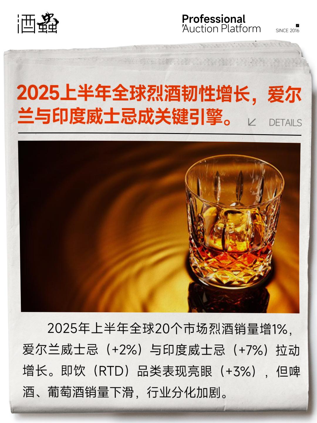 据IWSR最新数据,2025年上半年全球20个主要市场烈酒销量同比微增1%,呈现“冰火两重天”格局。爱尔兰威士忌(+2%)与印度威士忌(+7%)成为核心驱动力,前者在印度(+23%)、日本(+27%)市场爆发,后者依托本土需求强势攀升。与此同时,即饮(RTD)品类增长3%表现亮眼,但啤酒、葡萄酒分别下滑1%和5%,折射出消费场景碎片化趋势。行业首席运营官Emily Neill指出,烈酒韧性背后是子品类高度分化,且印度有望在2027年超越日本成为关键市场。