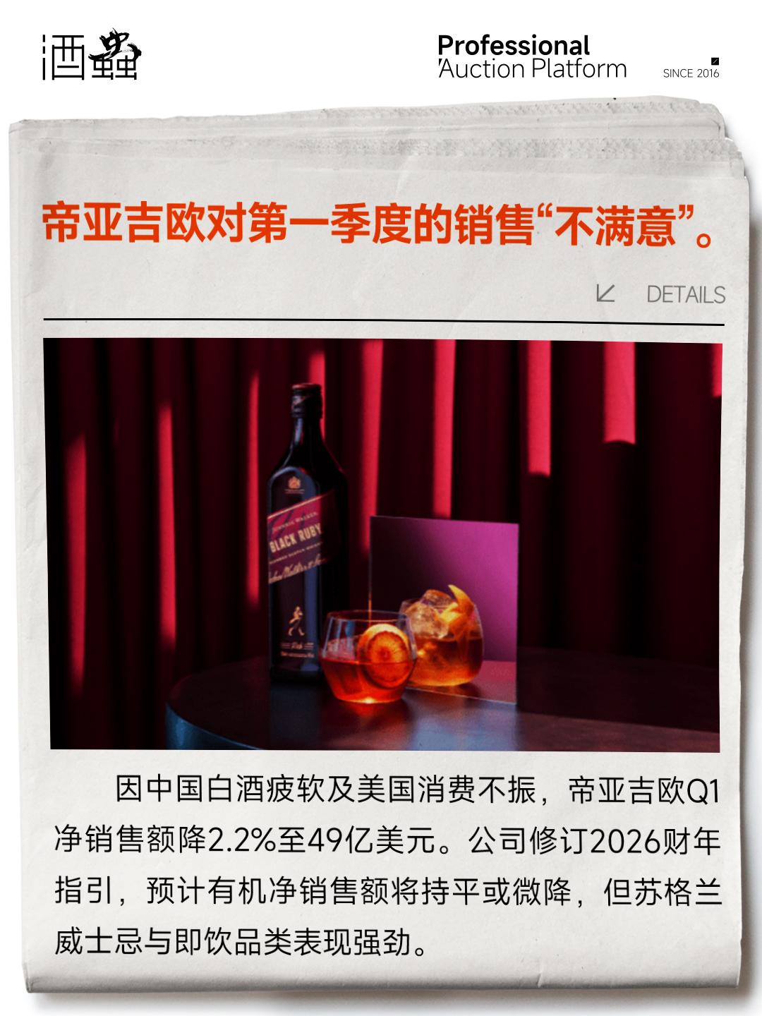 行业巨头帝亚吉欧2026财年首季财报显示,净销售额下降2.2%至49亿美元,主要受中国白酒疲软、北美消费环境低迷拖累。公司随即下调全年指引,预计有机销售额“持平至微降”。但细分市场亮点突出:尊尼获加带动苏格兰威士忌增长,拉美、非洲市场销售额增幅超10%,即饮品类(如Casamigos预调鸡尾酒)势头强劲。临时CEO Nik Jhangiani表示,正通过成本控制与投资优化应对短期压力。