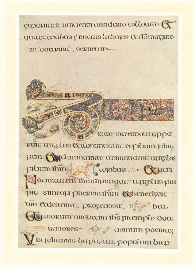 《凯尔经》(Book of Kells)是中世纪“海岛艺术”(Insular Art)的巅峰之作,是公元8世纪末至9世纪初诞生于苏格兰/爱尔兰地区的泥金装饰手抄本,以华丽的宗教插画、繁复的线条装饰著称,是凯尔特艺术与西方书法的巅峰代表作之一,也是爱尔兰国宝级文物。如今《凯尔经》被永久收藏于都柏林圣三一学院图书馆。