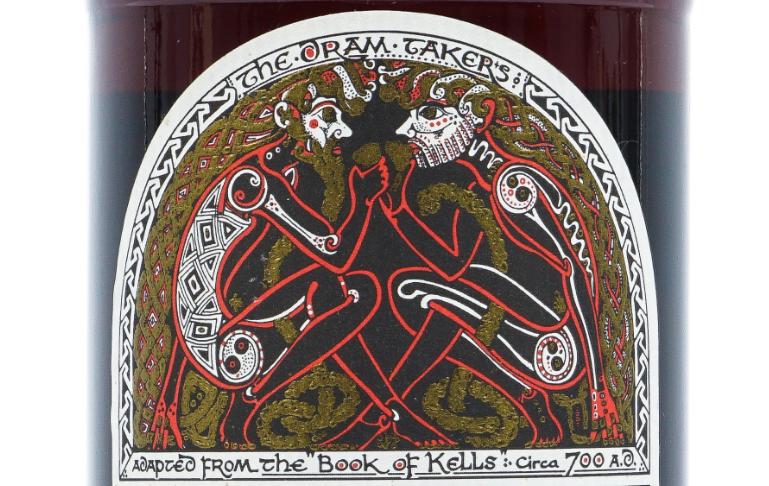 这个酒标图案的核心是致敬《凯尔经(Book of Kells)》的中世纪艺术风格,同时传递“分享威士忌”的文化意象,是高登麦克菲尔(Gordon & MacPhail)“凯尔经系列”的标志性设计,酒标明确标注“Adapted from The Book of Kells”(改编自《凯尔经》)。