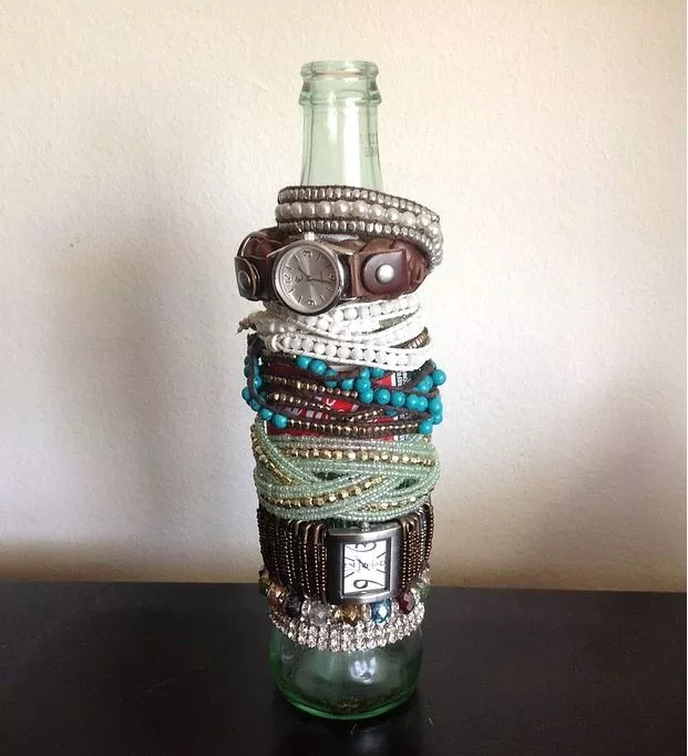 最简单的妙用来了!只要你有一个干净的玻璃瓶,就可以将日常零碎——发圈、手链、手表,甚至钢笔与香签,轻轻缠绕或插入瓶口。它瞬间化身你的“桌面灯塔”,杂乱小物各有归处,取用一目了然。