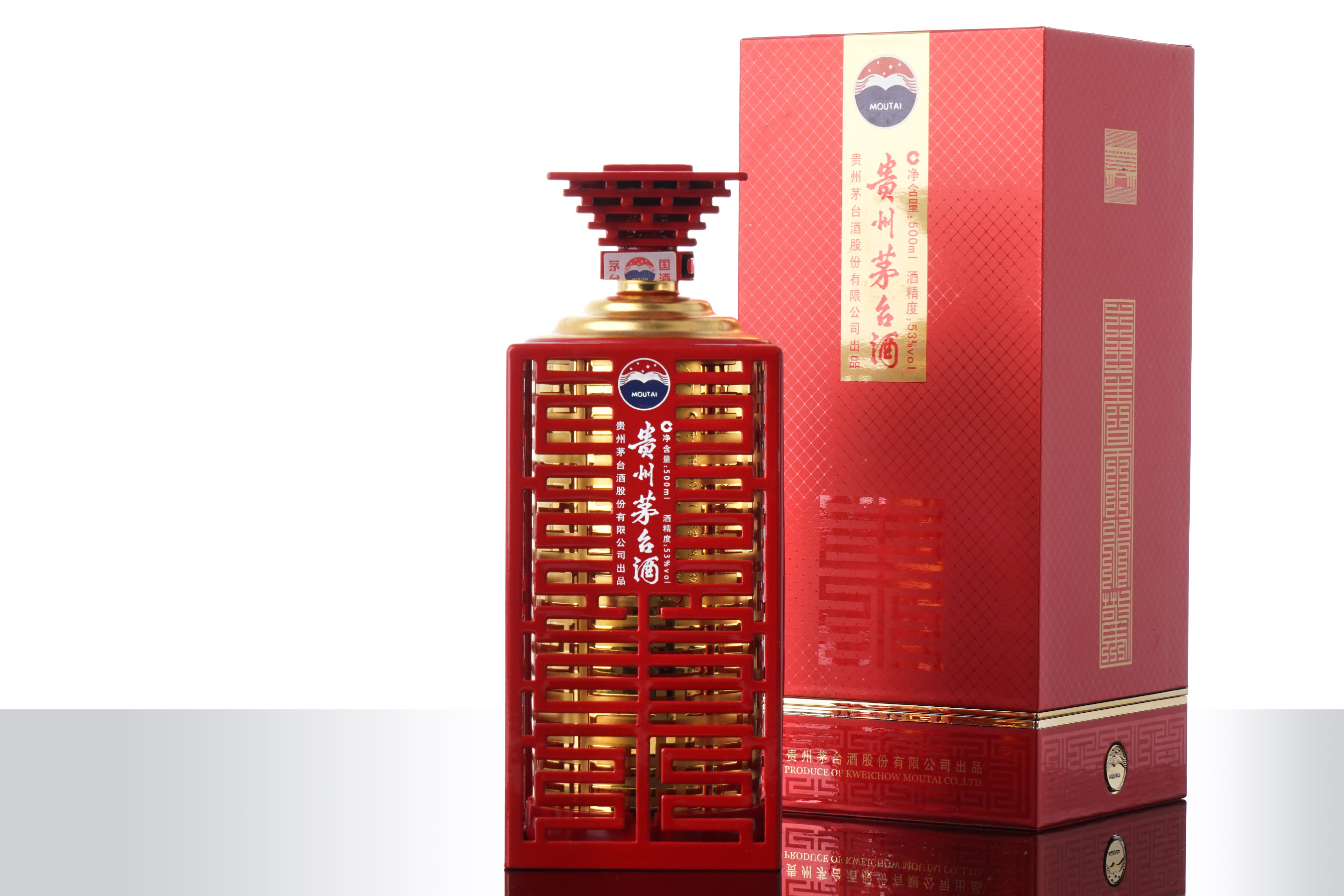 为纪念2010年上海世博会,贵州茅台酒作为盛会唯一指定白酒,特别推出世博喜酒系列。本品为2011年世博喜酒,其设计灵感来源于中国馆造型,突破传统瓶型限制,采用“内圆外方”的套层结构。瓶身金黄璀璨,流光溢彩;外框融入传统“喜”字吉祥纹样,瓶帽凝练中国馆形态精髓,整体洋溢出热烈而祥和的庆典气息。