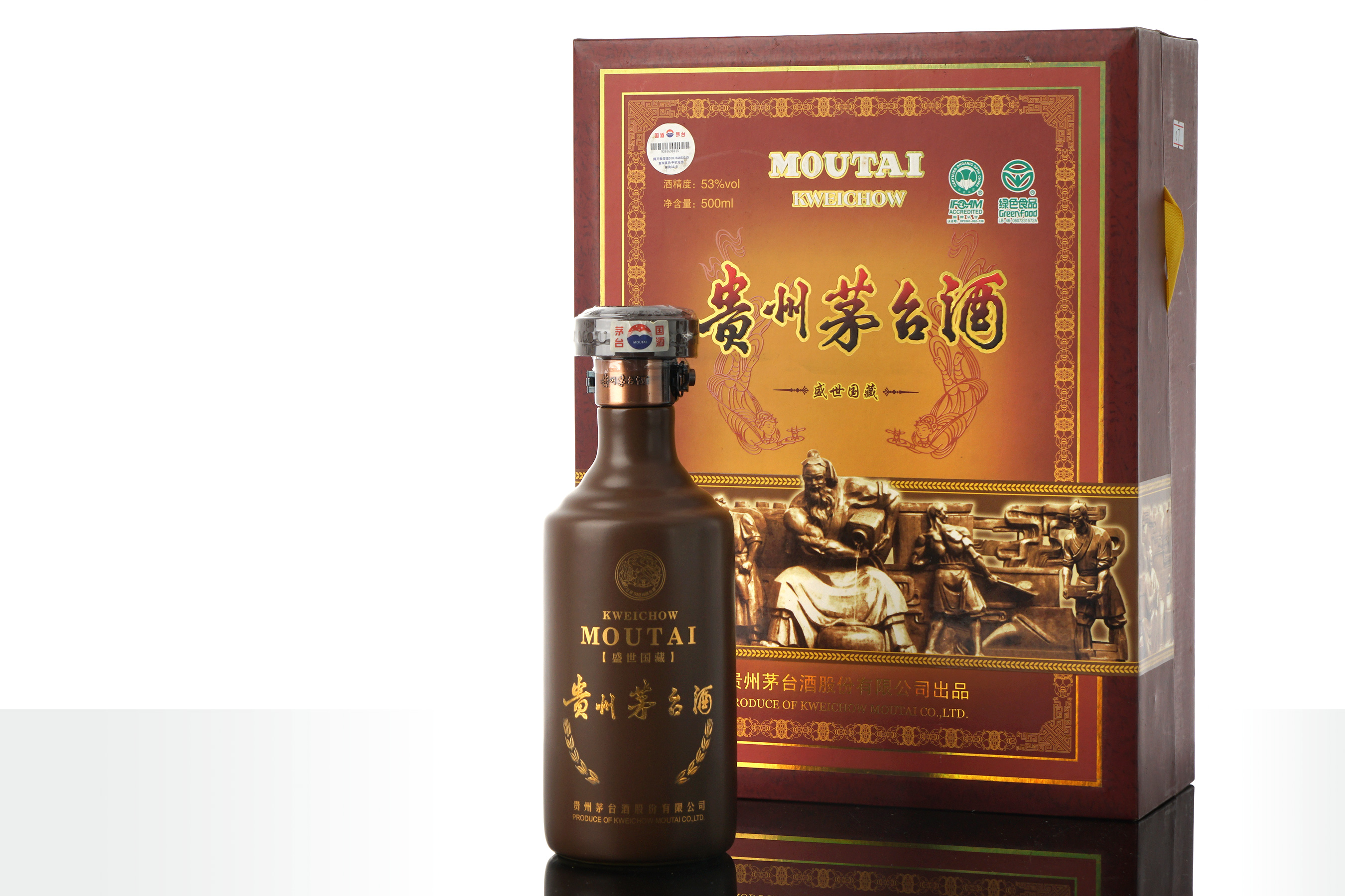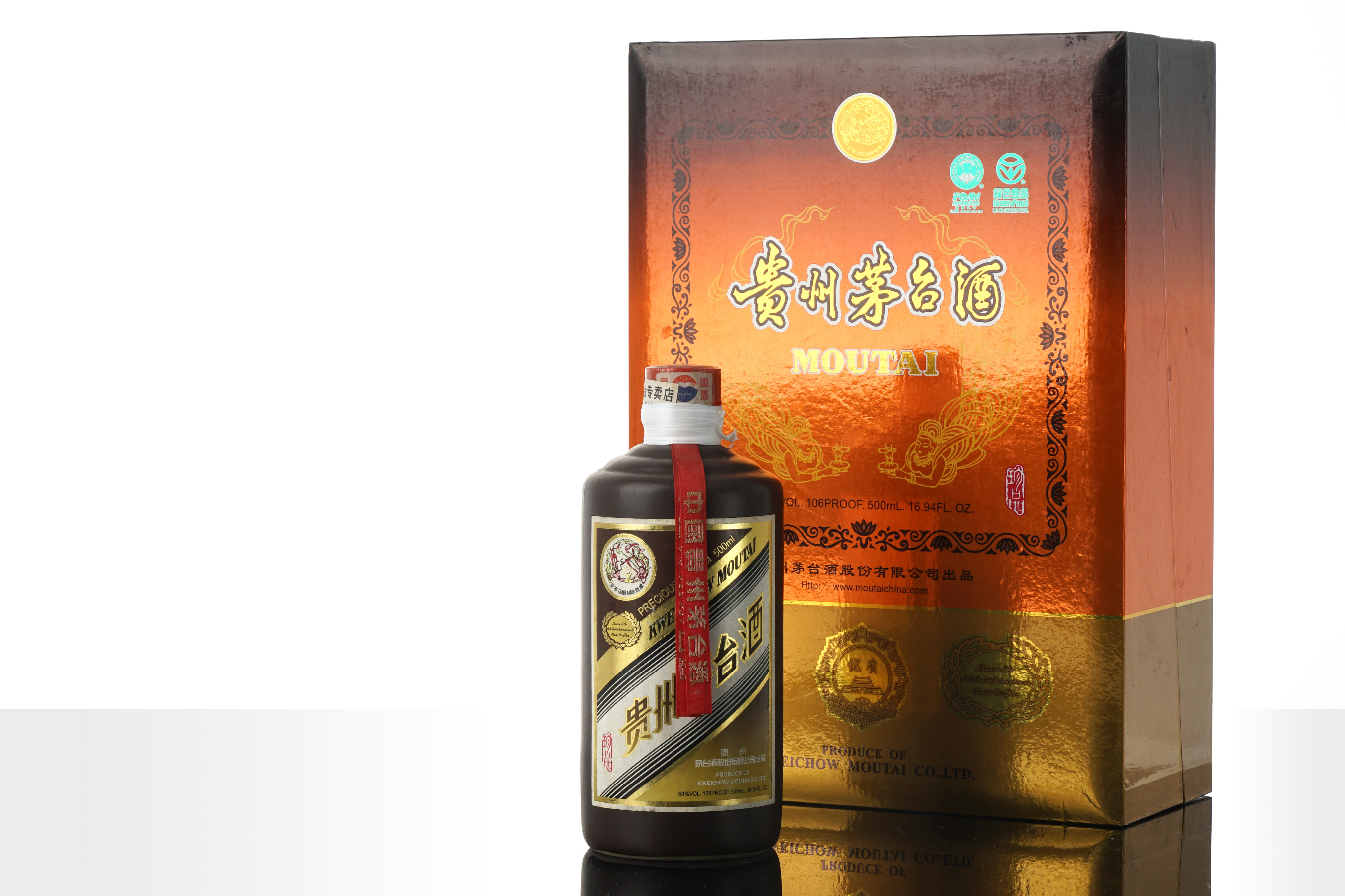 酒瓶设计灵感源自早期茅台酒使用的传统土陶容器,还原古朴风貌,经现代工艺重塑,既保留古朴轮廓,亦优化线条与触感,兼具古典韵味与现代审美。瓶盖缀以经典标识,并搭载先进防伪技术,体现传统与现代的结合。