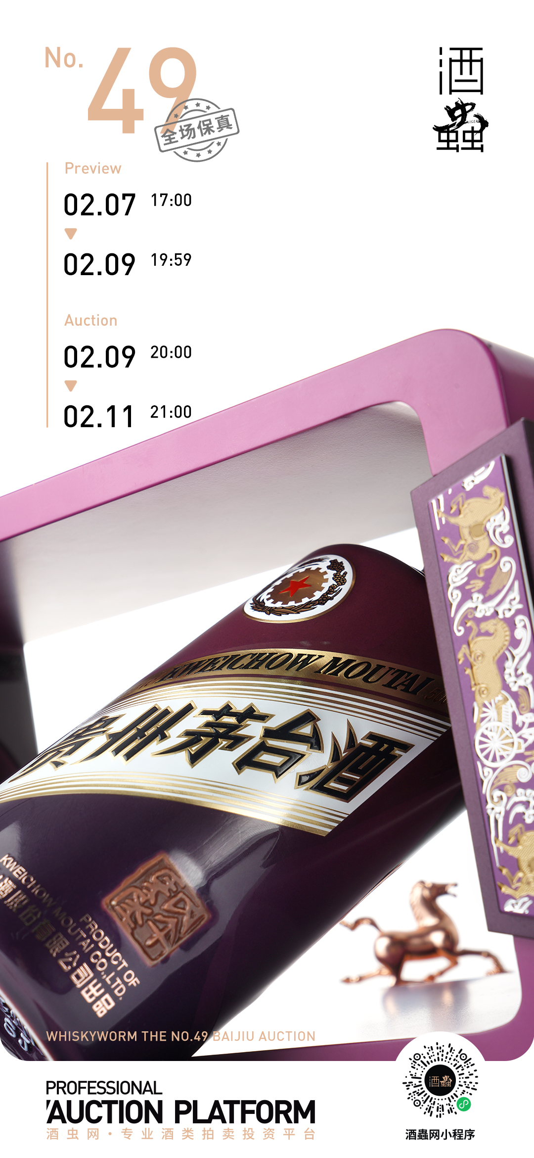 酒虫网第49期白酒拍卖专场,欢迎登录“酒虫网”APP或微信搜索同名小程序,探寻更多时光佳酿,参与本期专场竞拍。