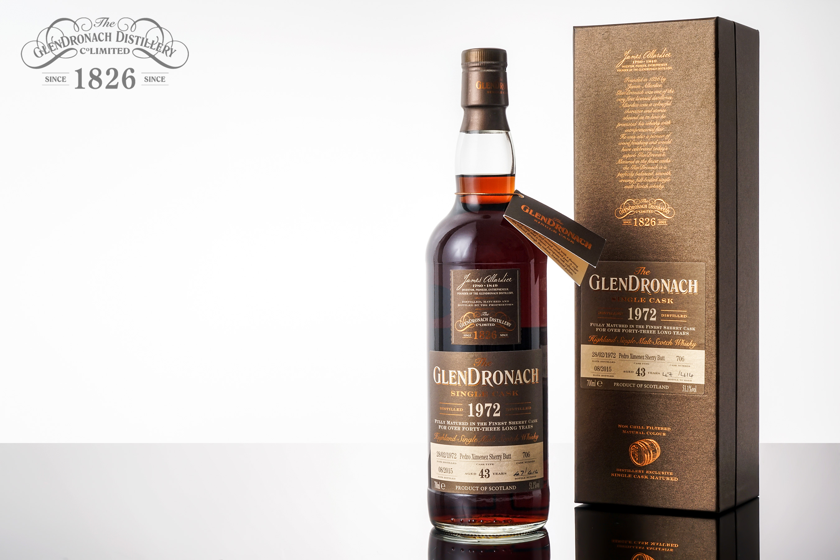 位于高地区的格兰多纳一直以生产优质雪莉威士忌闻名,是Whiskyfun Serge 心目中排名前五的威士忌酒厂。Glendronach在过去几年因为屡次于麦芽狂人竞赛中获得高分评价名声愈发响亮。