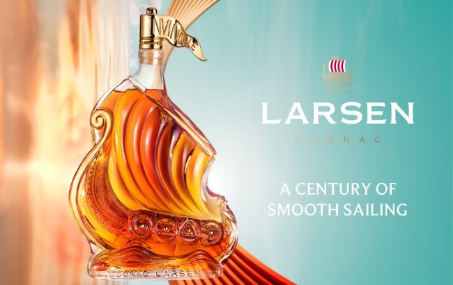 国际饮料公司于2023年收购拉森干邑后,为庆祝其百年庆典而推出全新品牌形象,意在推动该品牌在全球干邑市场的发展,吸引新的消费者。新形象包含醒目的标志和独特的配色,其核心元素是象征维京精神的“Drakkar”图案,设计灵感源于航海建筑和维京长船。